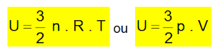 A energia interna de um gás é a soma de todas as energias que se encontram na amostra gasosa. Para um gás ideal, essa energia pode ser determinada pela energia cinética das moléculas (vibração e rotação) e da energia potencial, devido a forças intermoleculares. Para um gás perfeito monoatômico, a energia interna U é dada por: